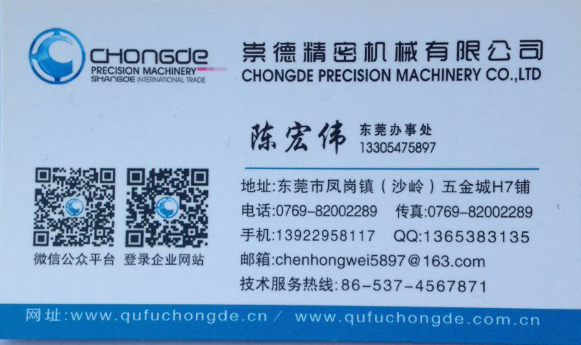 這張名片你有沒有很熟悉?是的,今天小編隆重為大家介紹的是崇德機(jī)械--東莞鳳崗鎮(zhèn)辦事處,看陳老板如何在東莞鳳崗叱咤風(fēng)云。