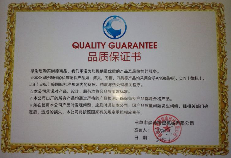 之所以我們崇德公司有如此高的好評,除了我們有過硬的品質(zhì)保證外,更重要的是崇德公司的售后服務(wù)工作做的好。我們陳老板鄭重承諾:凡東莞鳳崗鎮(zhèn)附近有需要的客戶,你只要一個(gè)電話,我保證30分鐘內(nèi)趕到。這也是我們公司在中國的多個(gè)片區(qū)就會設(shè)立辦事處的重要原因--崇德讓每位刀具使用者安心,放心,舒心。